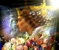 « Shâhin », l'homme-aigle qui tourne son regard vers une culture persane rénovée sur la base de l'antique sagesse, est l'emblème de l'Ordre des Azadegan, l'Odre des Preux Chevaliers Perses.