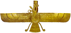 Forme stylisée du "fravahar", l'antique symbole mazdéen (zoroastrien) représentant Ahura Mazda, le Seigneur Sagesse, son origine remonte au moins à Cyrus Le Grand et on le retrouve sur les bas-reliefs de Persepolis.
